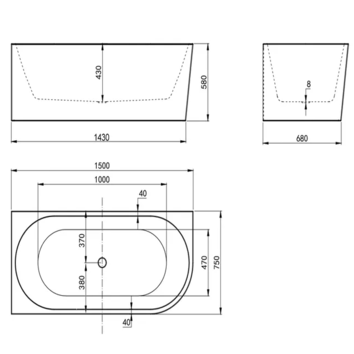 DELTA 1500mm Back-To-Wall Acrylic Bath