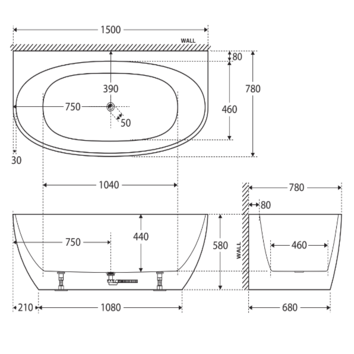KEETO Back-To-Wall Acrylic Bath